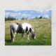 A beautiful black and white horse / pony grazing at the bottom of a grassy hill. At the top of the hill you can see a glimpse of humanity. Horse & pony photography postcards can make great miniature wall art for horse and pony lovers. Just pop them in a frame! Collect them all! Photography © Lisa Marie Robinson