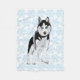 This lovely snuggly blanket features a black and white Husky against a backdrop of snow flakes against a white background.
