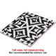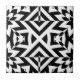 This ceramic tile features a captivating geometric pattern that is symmetrical and complex. The design is composed of bold, angular shapes that converge in the centre of the tile, creating a visually engaging motif. The pattern is chraacterised by its stark contrast between black and white elements. Black lines form dominant X-shaped patterns, surrounded by triangular and diamond shapes. White spaces are strategically placed to enhance the contrast and complexity of the design. The overall style of the tile is contemporary, with its sharp angles and lines evoking a sense of modern art. This tile could be a versatile addition to various interior spaces, adding elegance and visual interest with its intricate design. Its modern aesthetic could complement a variety of decor styles, from minimalist to eclectic.