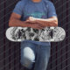 This is a black ink drawing of my original graphite drawing of a human skull with roses. The design centres nicely on the skate deck. Check out my shop for more similar illustrations.