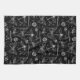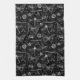 This nature kitchen towel features an array of hand-drawn creatures including butterflies, bees, ladybugs, grasshoppers, dragonflies, caterpillars, worms and flies with the hand-written text "love bug" scattered about. Illustrated in white against a black background.