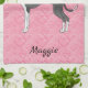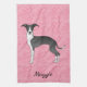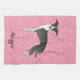 Black And White Italian Greyhound On Pink Hearts Tea Towel