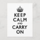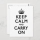 Black and White Keep Calm and Carry On Postcard