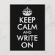 Keep Calm and Write On parody for writers in black and white. Authors can change the wording, text size or the background colour to create your own promotional materials.