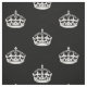 Black and white keep calm crown textile fabric. Customisable background colour behind logo. Great for DIY projects, clothing, accessories and more.