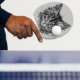 Black and White Kitten Face on Grey Ping Pong Paddle