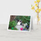 Black and White Kitten on Rockery Greeting Card. You can easily customise this product for free if you would like to add wording or change the colour of the background.