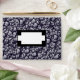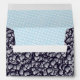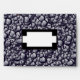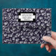 An envelope with a stylish black and white address panel with a drop shadow which gives the illusion of a stick on label. A smaller version of the label is repeated on the back which can be customised with your return address. This version has a black pearl effect background.