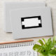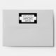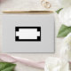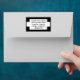 An envelope with a stylish black and white address panel with a drop shadow which gives the illusion of a stick on label. A smaller version of the label is repeated on the back which can be customised with your return address.