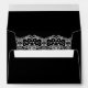 Elegant envelope featuring a beautiful white scalloped lace design on a black background.