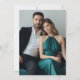 A clean and classy design for any trendy bride. This uncluttered look is simple and straightforward with a large calligraphy for the bride and groom names. The back includes a photo of the couple.