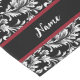 Customise this elegant black and white leaf pattern table runner with your family name - or the name of your house or hospitality business.