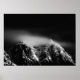 Black and white long exposure clouds over mountain poster