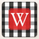 Black and White Lumberjack Plaid Monogram Square Paper Coaster