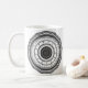 Black and white mandala mug with fine details and tiny yin yang to start your day with balance