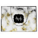 Black and white marble gold sparkle flake Monogram Large Gift Bag