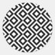 This stylish black and white geometric pattern is an original ornamental design. White meanders angle around black diamonds containing white diamonds. Black zigzags provide subtle separation between the winding paths.