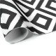 This stylish black and white geometric pattern is an original ornamental design. White meanders angle around black diamonds containing white diamonds. Black zigzags provide subtle separation between the winding paths.