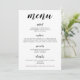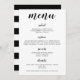 A simple and classy menu featuring a black and white stripe on the back side with simple and stylish text on the front. This menu can be used on it's own or as a compliment to our Black and White Wedding Invitation Suite. Check it out at the Scriptiva Zazzle Shop - www.zazzle.com/scriptiva