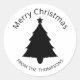 Black And White Minimalist Christmas Tree And Star Classic Round Sticker