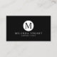 featuring black monogram in white circle element with business information in white professional font style on black background.