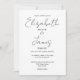 This black and white minimalist elegant script wedding invitation can be personalised with your information in chic typography and special photo on the reverse. Designed by Thisisnotme©