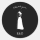 Black and white modern HandDrawn Couple Wedding Classic Round Sticker