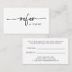 These modern, black and white small business referral cards feature elegant handwritten script typography on a white background, for a simple and minimalist look your customer will love. This understated yet stylish design will work for almost any type of business, from a makeup artist, to a hair stylist, to a makeup artist, or even spa or retail. The back contains plenty of room for you to totally customise with your store or company information.