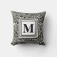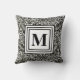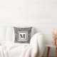 Black and White Modern Monogram Foilage Pattern Cushion