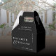 This black and white minimalist monogram wedding favour box can be personalised with your information in modern typography. Designed by Thisisnotme©