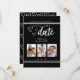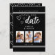 Black and White Modern Photo Collage Save the Date. Announce your upcoming nuptials with this chic and modern save the date card. Featuring a bold black background, this design showcases your 3 favorite engagement photos beautifully. A playful scattering of hand-drawn hearts adds a touch of romance and whimsical design, while the elegant typography clearly states 'Save the Date' and includes space for the couple's names and wedding date. This is the perfect way to inform your guests and build anticipation for your special day, setting a sophisticated tone for your wedding stationery suite. Ensure your loved ones mark their calendars for your unforgettable celebration.