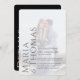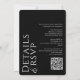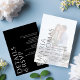 This design features a black and white modern, minimalist style, with a photo template, and elegant, simple, typography design, an all in one style, with details, and rsvp