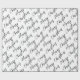 Black and white Christmas wrapping paper featuring a holiday greeting in a modern script font.
