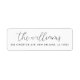A fun twist on the classic yet modern return address label featuring script typography on top paired with a modern font on bottom in a minimalist layout. Finished in a sleek color scheme of black text on a white background .