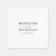 A sophisticated black and white wedding napkin featuring a minimalist design with the couple’s names and wedding date in a timeless serif and script font. This elegant and modern napkin is perfect for wedding receptions, rehearsal dinners, bridal showers, and engagement parties. With its clean typography and classic layout, it adds a refined touch to any formal or contemporary wedding theme.