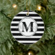Personalised Black and White Modern Stripe Monogram Ceramic Ornament