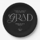 Graduation gift modern elegant stylish contemporary party decor paper plate design. Contemporary black and white modern typography party decor balloon design.