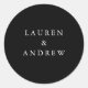This wedding envelope seal/sticker features a minimalist background with white text. Fully customisable with your names and background colour. For more detailed customisation, click the "Click to Customise further" link. Matching wedding suite items are also available in this collection.