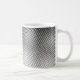 This artsy mug features a bold moire pattern that plays tricks on the eyes. The design depicts overlapping patterns of black dots creating fun patterns that create optical illusions making the mug look like it's moving.