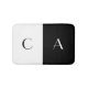 Comfortable and stylish monogrammed bathmat is white on one half and black on the other with black and white initials.