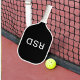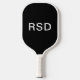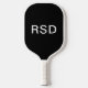 Personalised pickleball paddles make great gifts for all occasions. This design features a simple black background with white block-style monogram text. You can customise the text with any initials or wording of your choice.