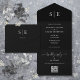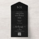 This chic minimalist all-in-one black and white wedding invitation can be personalised with your monogram initials and wedding day information. The invitation includes a perforated RSVP with your wedding website QR code and details. Designed by Thisisnotme©