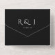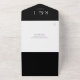 An elegant black and white minimalist all-in-one wedding invitation featuring your special date and wedding details set in classic, chic typography. The invitation includes a perforated RSVP card with your wedding website QR code and details. Designed by Thisisnotme©
