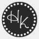 Stylish monogram envelope seals done in black and white. A solid black round sticker, with white polka dots around the edge and white two letter initials, in the centre. Great with our matching black and white monogram wedding set.