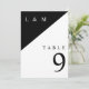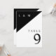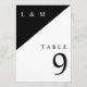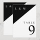 These black and white minimalist, elegant wedding table numbers can be personalised with your information in modern typography. Designed by Thisisnotme©