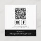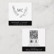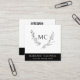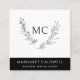 Black and White Monogram Wreath with Slogan Square Business Card... The front of our black and white square business card features an elegant botanical wreath bordering your two monogram initials in classic black ink on a white background. Your name and title (or company name) appear in white ink on a black rectangle bordering the bottom of the business card, giving an authoritative structure to balance the delicate leafy wreath. On back of the card is your social media contact info, website address and QR code linking to additional information. The black section on the bottom contains your business motto or tagline. Example text currently shows "My motto is" followed by "Always take the high road" in white script typography. All text and the QR code can be easily revised on the personalisation template.