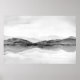Black and White Mountain Reflection Landscape in Grey Tone Monotone Wall Art from my Watercolor Painting.