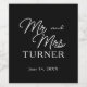 The design features Mr. and Mrs. (Last Name) in a fun and elaborate script font, creating a romantic and celebratory focal point. Just below, your wedding date is displayed in clean, modern typography—anchoring the design with timeless simplicity. The black-and-white contrast gives the label a striking and polished look, making it an eye-catching detail that blends beautifully with candlelight, florals, and other decor.