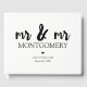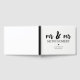 Wedding guestbook in black and white with mr & mr written in a bold calligraphy font for a sophisticated gay wedding. Customise with your shared last name and wedding date.