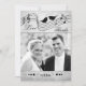 Romantic wedding Thank You card featuring your own favourite wedding picture framed by a music themed design with lace and singing love birds in black and white.